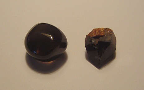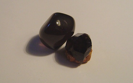 These are the two test specimen: 1 Orb of the Moons (medium translucency), 1 Smoke Quartz Crystal: