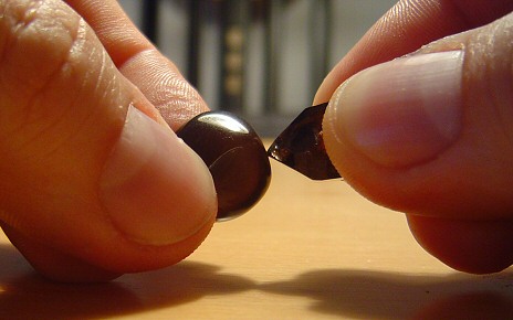 For years there is confusion regarding the actual mineral composition of the Moon Stones (Orb of the Moons) included in the standard editions of Ultima VI - some people believe it to be real 'stone' (as in Quartz), others favor the idea of industrially made glass orbs.